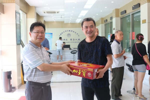 入伏以來,氣溫持續(xù)升高,為切實(shí)做好夏季防暑降溫工作,保障一線勞動者的身體健康,確保供水生產(chǎn)的正常運(yùn)行,7月26日上午,在總經(jīng)理繆朝暉的帶領(lǐng)下,公司領(lǐng)導(dǎo)帶著防暑降溫用品,深入供水生產(chǎn)、服務(wù)一線、施工現(xiàn)場和鄉(xiāng)鎮(zhèn)供水所進(jìn)行夏季高溫慰問,把公司的關(guān)心、關(guān)懷送到了員工中間,使廣大員工在炎炎夏日中感受到了絲絲清涼。在慰問現(xiàn)場,公司領(lǐng)導(dǎo)對高溫期間仍然堅(jiān)守崗位的廣大員工表示慰問和感謝,同時叮囑做好防暑降溫工作,動員大家戰(zhàn)高溫、保生產(chǎn),全力組織好夏季高峰供水工作,確保安全度夏。