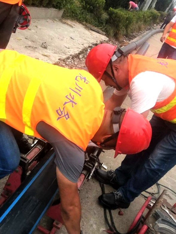 2018年9月6日上午,江都區(qū)武堅(jiān)鎮(zhèn)開發(fā)區(qū)DN200PE管道施工現(xiàn)場(chǎng)打破了往日的沉悶,一輛輛工程施工車輛整齊地停放在道路一側(cè),揚(yáng)州市惠民區(qū)域供水投資有限公司各鄉(xiāng)鎮(zhèn)供水所和測(cè)漏維修隊(duì)將在這里進(jìn)行PE管熔焊技術(shù)實(shí)踐演練活動(dòng)。