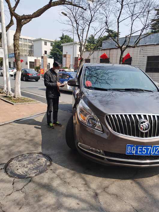 圖2:公司志愿服務人員對外來車輛進行登記