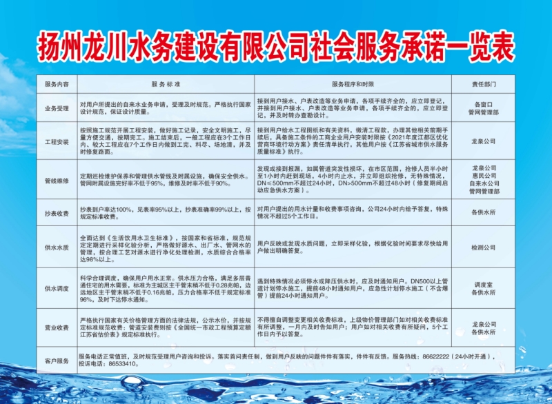 揚州龍川控股水務建設有限公司社會服務承諾