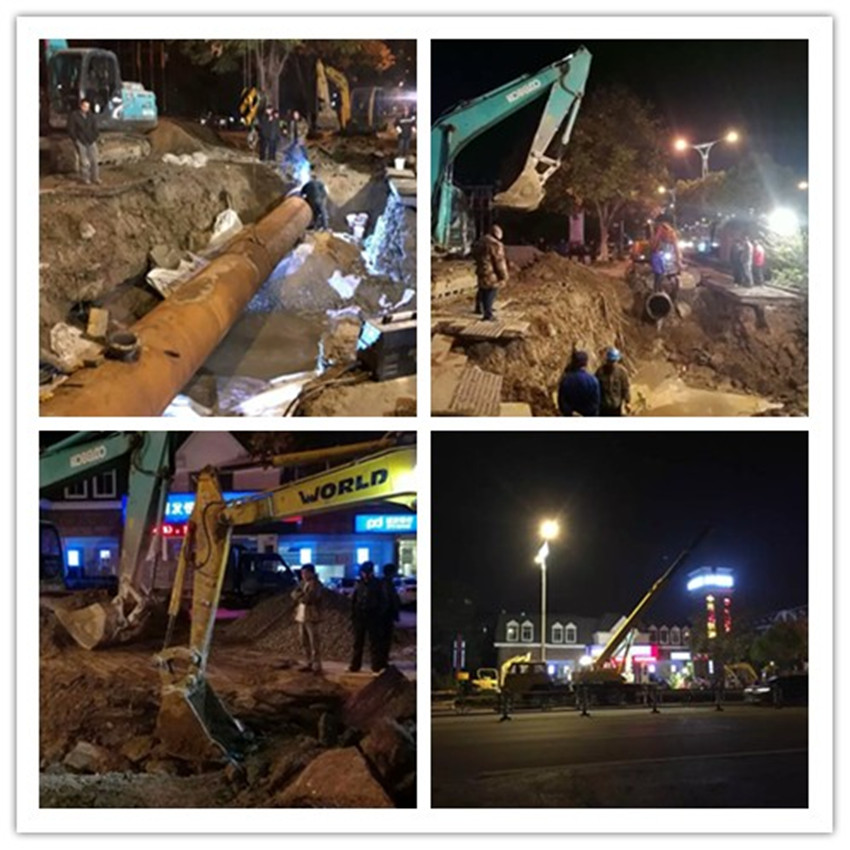 爆漏發生后,區自來水公司立即派遣4個班組50余人趕赴現場,關閉閥門、投入搶修。經過一整夜的搶修,現場施工開挖、清除破損管網,更換新的供水管網,至21日凌晨4點半,爆管管道完成更換并恢復供水。
