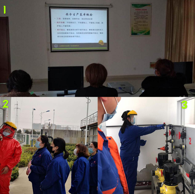 以邵伯污水廠為例,該廠結(jié)合自身工作實(shí)際,組織污水運(yùn)營(yíng)工學(xué)習(xí)次氯酸鈉的特性、消殺毒原理及如何正確使用防護(hù)裝備,熟練掌握次氯酸鈉發(fā)生泄漏時(shí)的各項(xiàng)應(yīng)急處理措施,并在現(xiàn)場(chǎng)實(shí)施了一系列演練活動(dòng)。另組織運(yùn)營(yíng)工赴小紀(jì)污水處理廠內(nèi)觀看學(xué)習(xí)安全教育視頻,提高了員工安全防范意識(shí)及風(fēng)險(xiǎn)識(shí)別能力。