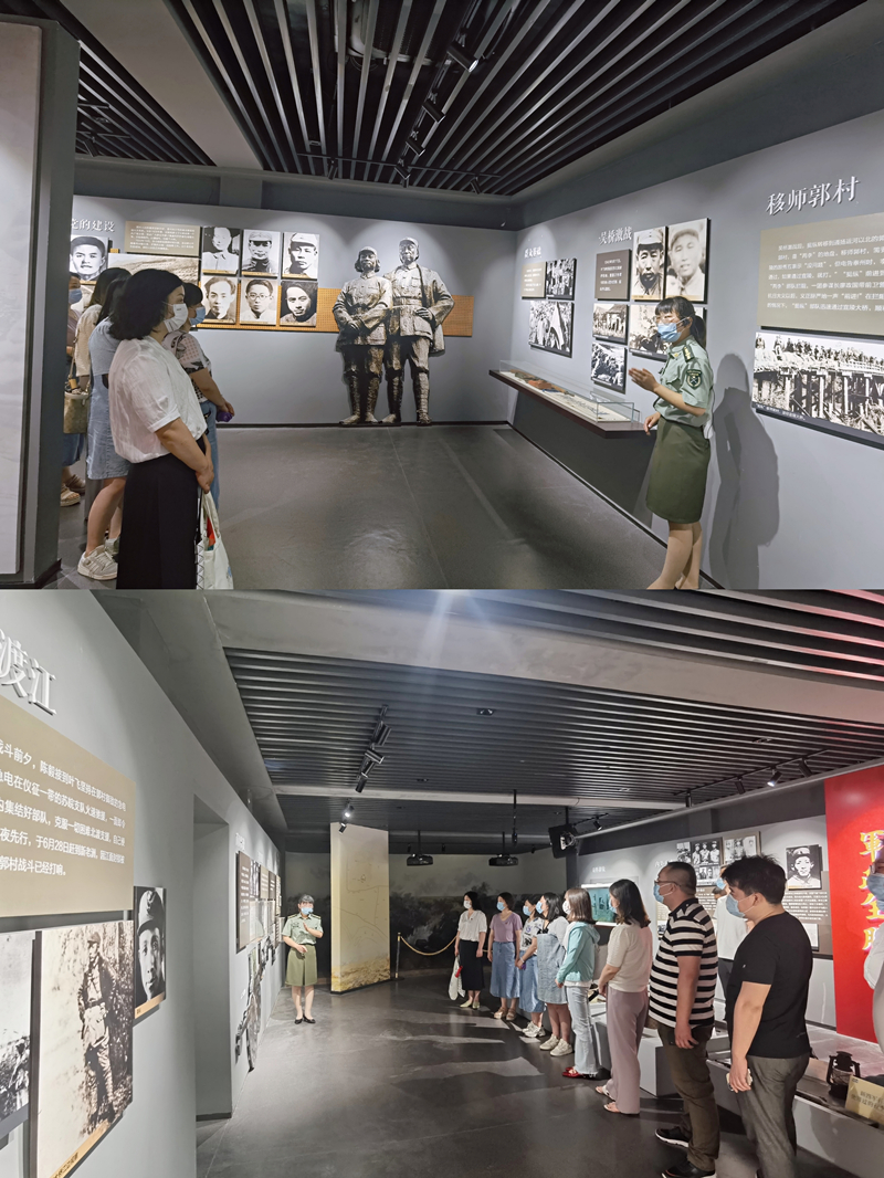 大家在講解員的引領(lǐng)下,先后認(rèn)真參觀了郭村保衛(wèi)戰(zhàn)紀(jì)念館、新四軍蘇北指揮部紀(jì)念館,觀看歷史圖片展覽、烈士遺物、模擬戰(zhàn)役場景等,在一件件珍貴歷史文物前,駐足凝視,用心聆聽革命先烈的英勇事跡。展廳里的圖片、文字、油畫、地圖、報(bào)紙剪片、音像資料等,再現(xiàn)了郭村保衛(wèi)站當(dāng)年戰(zhàn)役的場景,震撼人心。