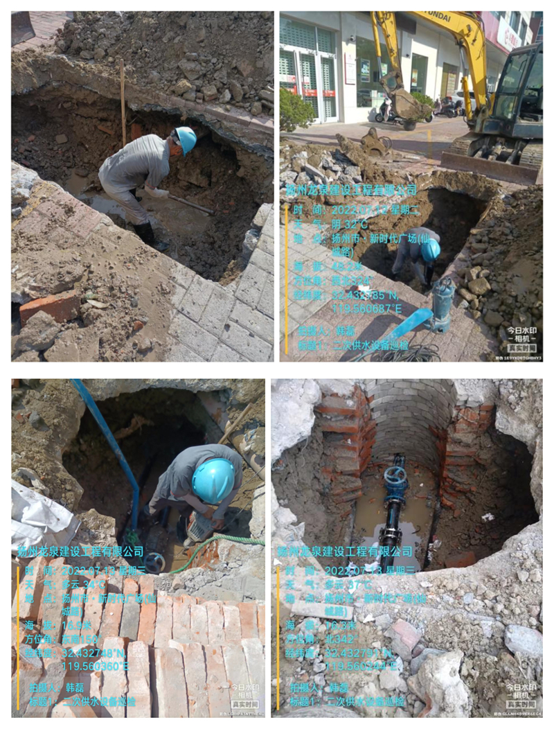 今年三伏天,高溫和暴曬持續(xù)不斷,天氣異常炎熱。7月13日,新時(shí)代廣場(chǎng)高層供水管道破裂。龍泉公司接到客服部工單后,維修部與高層供水運(yùn)管部對(duì)新時(shí)代廣場(chǎng)周圍進(jìn)行漏點(diǎn)排查,在華夏銀行門口發(fā)現(xiàn)高層管道破裂,導(dǎo)致高層用戶水壓偏低。隨后工作人員立即調(diào)來(lái)人員和機(jī)械進(jìn)行緊急搶修。定位、圍擋、開(kāi)挖、排水、定方案,所有工序緊鑼密鼓、有條不紊。經(jīng)過(guò)通力協(xié)作,下午時(shí)間搶修完畢,恢復(fù)正常供水。