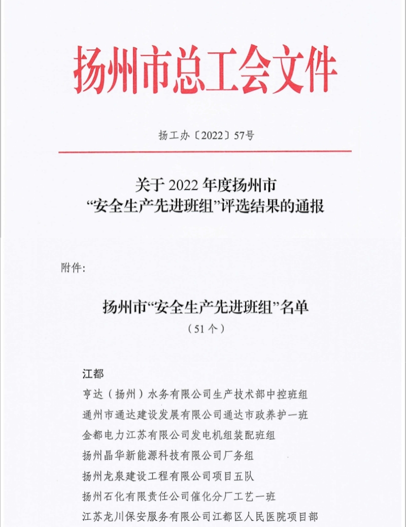 獲得揚(yáng)州市“安全生產(chǎn)先進(jìn)班組”的榮譽(yù),是對這支隊(duì)伍2022年安全生產(chǎn)工作的充分認(rèn)可與高度肯定,這將激勵(lì)他們在今后的工作中不負(fù)眾望、砥礪奮進(jìn),在公司內(nèi)部進(jìn)一步發(fā)揮安全生產(chǎn)的引領(lǐng)作用。