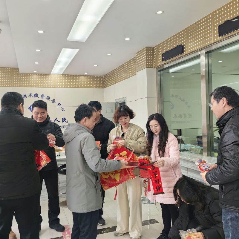 活動(dòng)現(xiàn)場,由龍川水務(wù)公司總經(jīng)理李忠國親自帶隊(duì),公司工會(huì)主席石元忠、副主席孫劍及黨群部工作人員共同組成新春走基層特別慰問小組陪同,他們帶著精心挑選的一系列洋溢著喜慶氛圍的“福”字,以及富有蛇年特色的掛件禮物,深入各部門與子公司的集中辦公點(diǎn),每到一處,都受到了職工們的熱烈歡迎。一張張?jiān)⒁庀槿鸬?ldquo;福”字,一件件憨態(tài)可掬的蛇年掛件,一句句飽含深情的真切問候,如冬日暖陽,將濃濃的年味兒與新春的祝福,精準(zhǔn)地傳遞到每一位職工的心坎上,讓整個(gè)公司沉浸在歡樂祥和的春節(jié)氛圍之中。